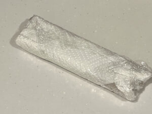 2.キッチンペーパーで包み、その上からラップで包み冷蔵庫の野菜室に入れる